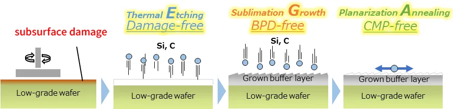 The three proprietary functions of the Dynamic AGE-ing® method enableSiC wafer quality improvement and surface planarization control.